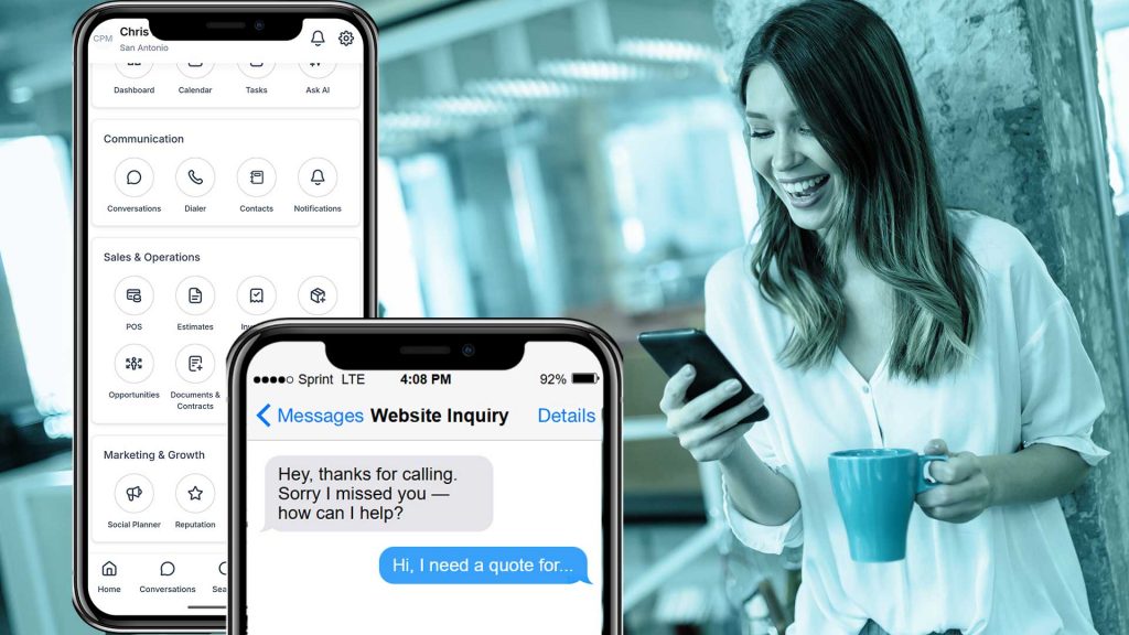 Someone fills out a form? They get a text from your business number before they close the browser. From there, automatic follow-ups keep the conversation going until the job is booked. After the job? A review request builds your Google rating on autopilot.